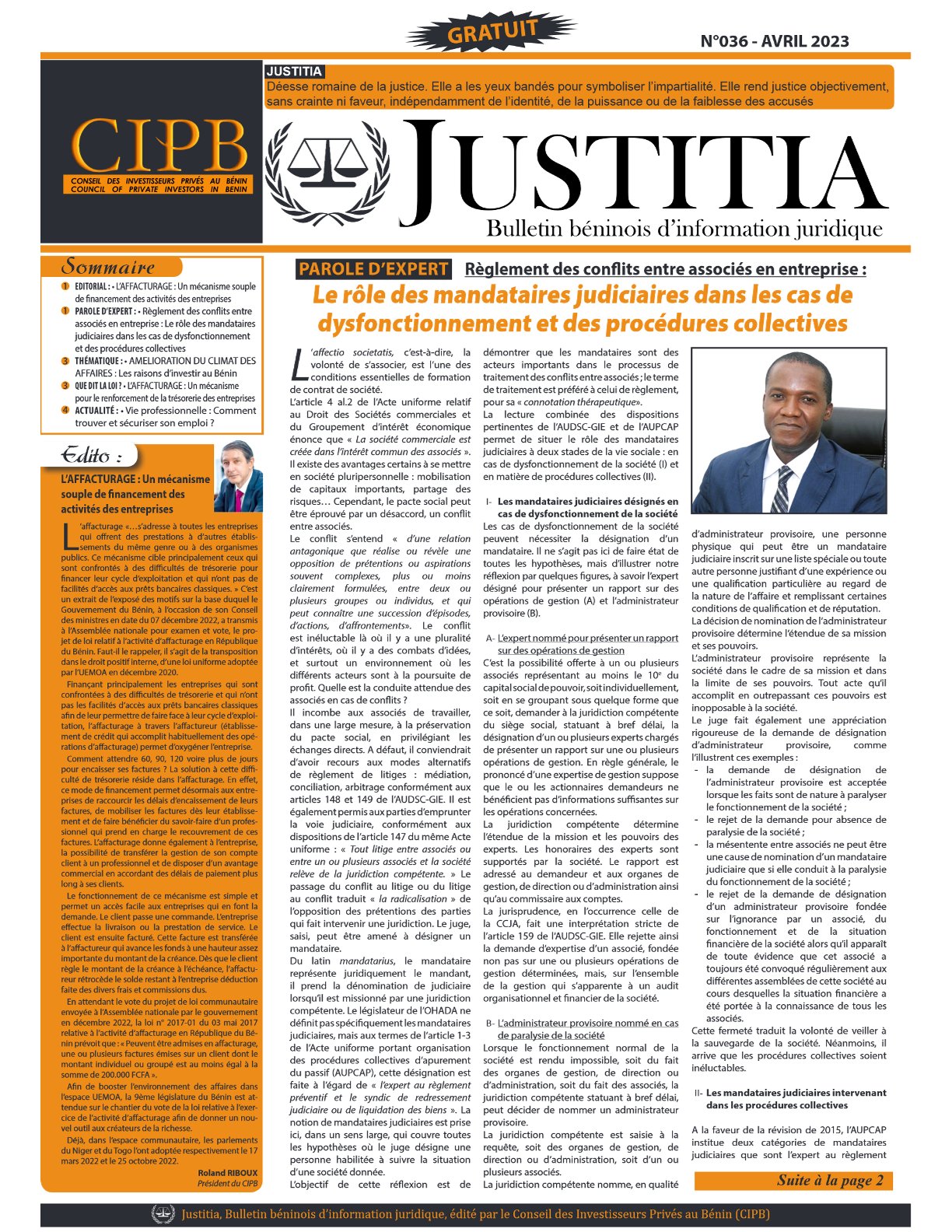 CONSULTER JUSTITIA N°36 Catégorie : JUSTITIAPar CIPB2 mai 2023 Share This Article Partager sur FacebookPartager sur Facebook Share on XPartager sur X Épingler lePartager sur Pinterest Partager sur LinkedInPartager sur LinkedIn Auteur : CIPB Navigation articlePrécédent Article précédent :SEMINAIRE SUR LA FISCALITÉ , 2ème ÉditionSuivantArticle suivant :Protocole d’accord entre le CIPB représenté par Monsieur Roland RIBOUX et Monsieur Dodji A. Hippolyte AMOUZOUVI,Professeur des Universités en SociologieRelated postsBulletin béninois d’information juridique: JUSTITIA N°4317 avril 2026Bulletin béninois d’information juridique: JUSTITIA N°4213 octobre 2025Bulletin béninois d’information juridique: JUSTITIA N°4022 janvier 2025Bulletin béninois d’information juridique: JUSTITIA N°393 juillet 2024Bulletin béninois d’information juridique: JUSTITIA N°389 février 2024Bulletin béninois d’information juridique: JUSTITIA N°3722 août 2023
